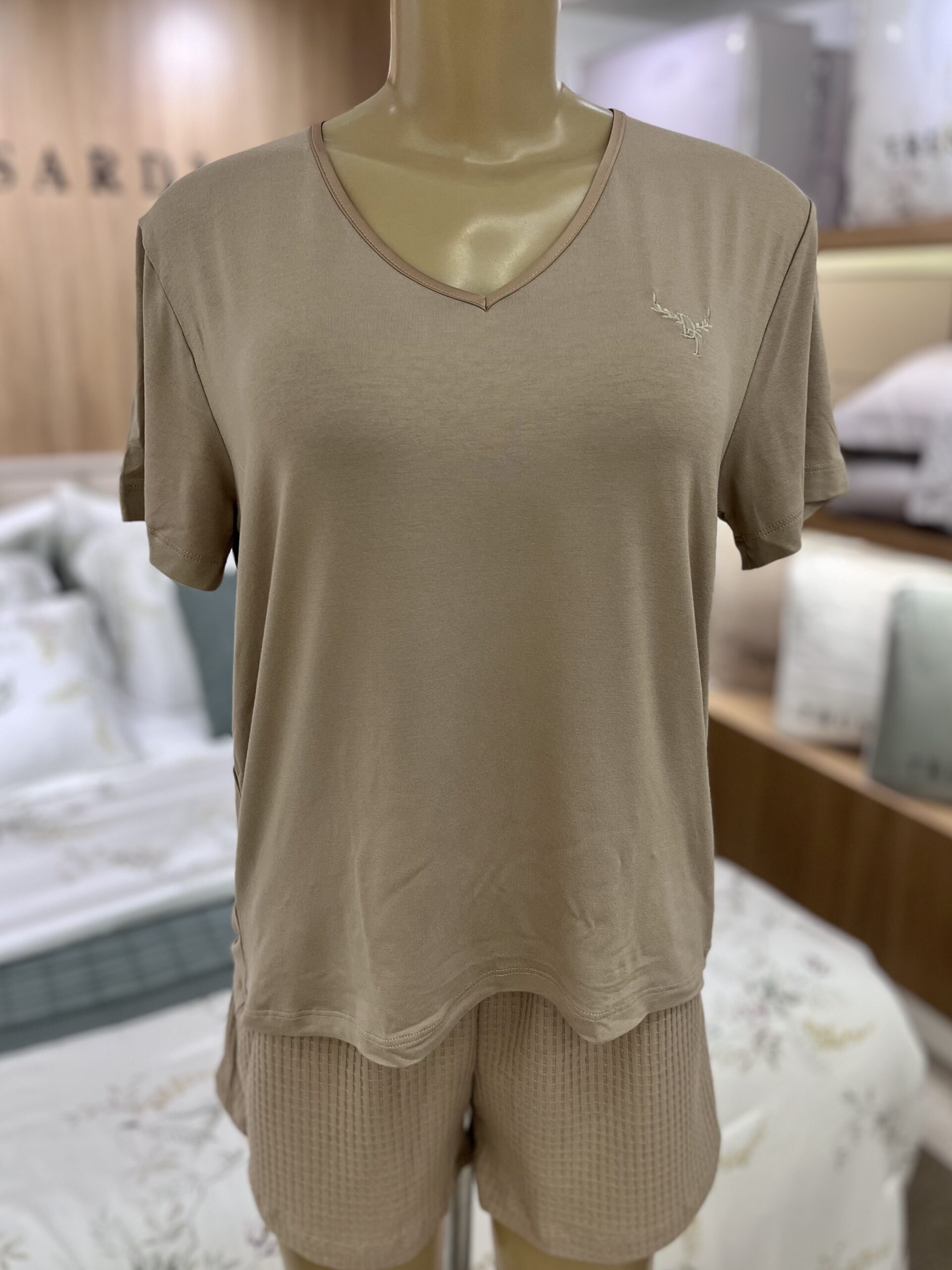 Pijama Feminino Verão Botões Linho Bege | MalhaLojas Varal2024-11-26T15:55:16-03:00 Pijama Feminino Verão Botões Linho Bege | Malha Banho, Pijama