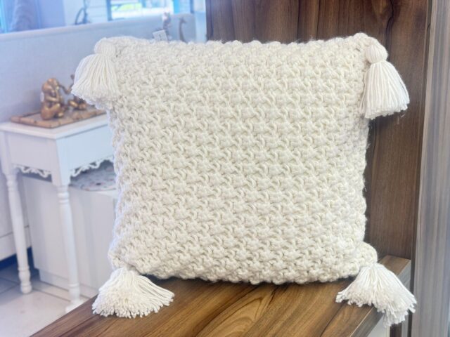 Peseira em tricot, 100% acrílico, muito macia e aconchegante. Contos é um convite ao conforto e ao encanto artesanal em sua casa. Esta almofada oferece não apenas suporte para suas costas, mas também um toque de estilo e charme para seu ambiente. Apresenta um padrão de tricô detalhado, que não só proporciona uma textura suave e macia ao toque, mas também adiciona um toque acolhedor e nostálgico ao seu espaço. Seja como um complemento para o sofá da sua sala de estar ou como um aconchego extra em sua cama ou sua poltrona favorita, a Almofada Contos é a escolha perfeita. Seu design versátil e charmoso torna-a um elemento essencial para adicionar personalidade e conforto à sua decoração.