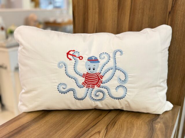 Almofada infantil em percal 200 fios, 100% algodão, com toque muito macio e aconchegante. Desperte a imaginação do seu filho com a almofada Caravella, com o bordado de um polvo super fofo, inspirado na magia das caravelas navegando pelo Mar da Ligúria e na lenda dos piratas que encontraram refúgio nas águas de Cinque Terre. Possui um delicado acabamento em cordonê. Ideal para momentos de carinho e diversão, transformando o quarto infantil em uma aventura marítima repleta de risadas e abraços.