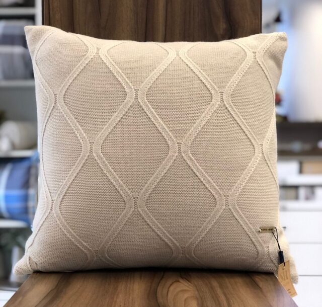 É confeccionada em linha de lã acrílica com lindos trançados. A sofisticação se dá pelo fino acabamento nas peças e cores. É ideal para dar charme e um toque final na decoração da sua casa.