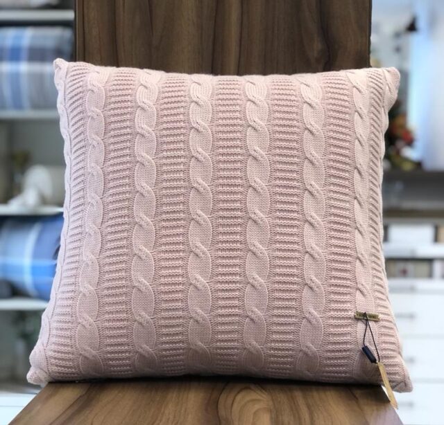 É confeccionada em linha de lã acrílica com lindos trançados. A sofisticação se dá pelo fino acabamento nas peças e cores. É ideal para dar charme e um toque final na decoração da sua casa.