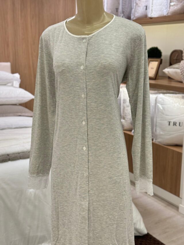Camisola feminina em viscose com elastano, com toque macio, super confortável, com abotoamento frontal e detalhes em renda.