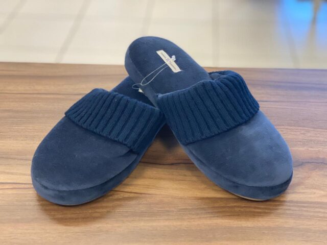 Chinelo fechado de inverno todo em microfibra com detalhe em tricot. Super quentinho, muito confortável e muito elegante!