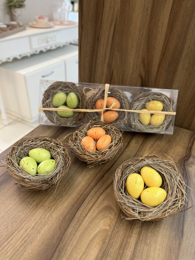 Conjunto 3 Ninhos com Ovos de Páscoa | Palha