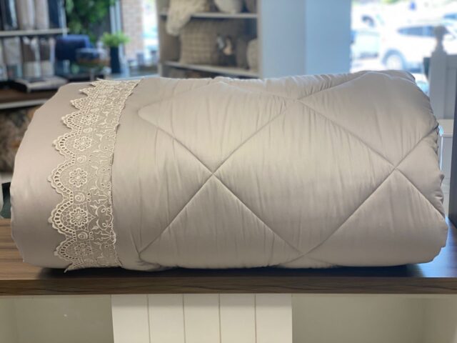 Edredom em cetim 400 fios, 100% algodão egípcio, com toque extremamente macio e aconchegante. O charme atemporal da renda faz com que o edredom Emiliano seja o favorito dos românticos de plantão. A peça torna o ambiente ainda mais elegante e aconchegante com o belíssimo bordado e sua cor.