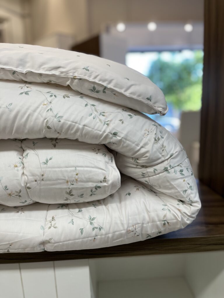 Edredom em 300 fios, 100% algodão. A estampa delicada de flores adiciona um charme sofisticado e natural ao ambiente. Ideal para quem busca qualidade, conforto e um visual refinado.