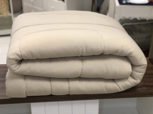 Edredom todo em malha de algodão, com toque super macio e confortável, trazendo muito aconchego para a cama.
