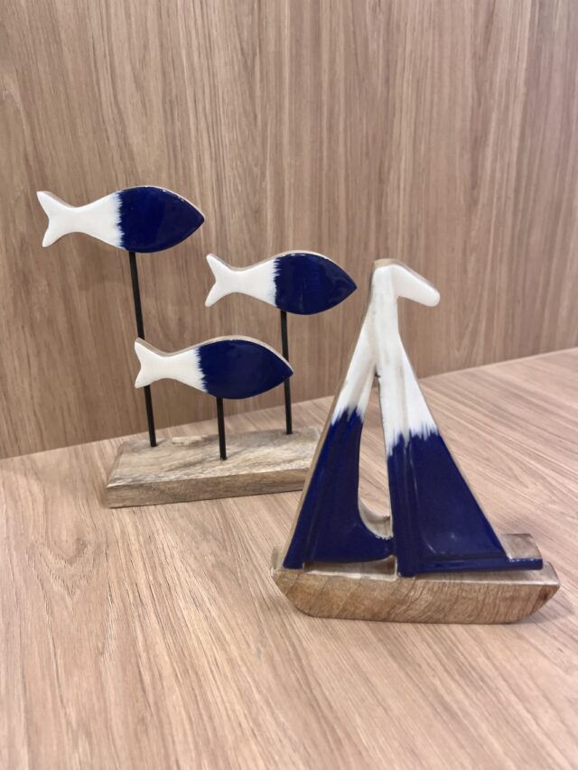 Escultura náutica em madeira com pintura. Perfeito para decorar casas de praia.
