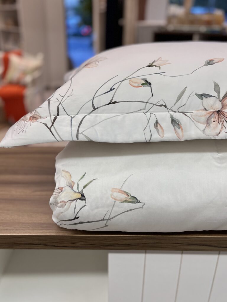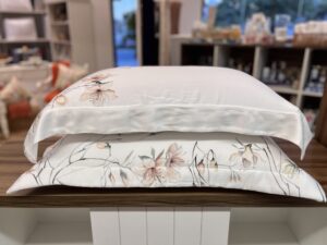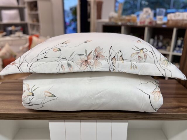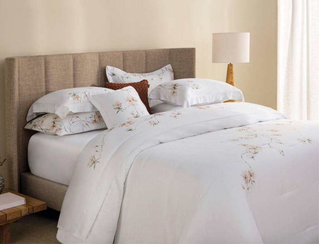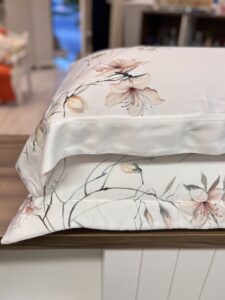 Jogo de colcha em 300 fios, 100% bambu. Na encantadora Praça Espanha, sua famosa escadaria se enche de delicadeza quando as azaleias desabrocham, trazendo vida e poesia a cada degrau. É como se os perfumes guardassem em suas pétalas a promessa de momentos inesquecíveis. Valorizando o fatto a mano, esta aquarela apresenta suaves pinceladas que recriam o encanto das azaleias romanas em um jogo de cama.