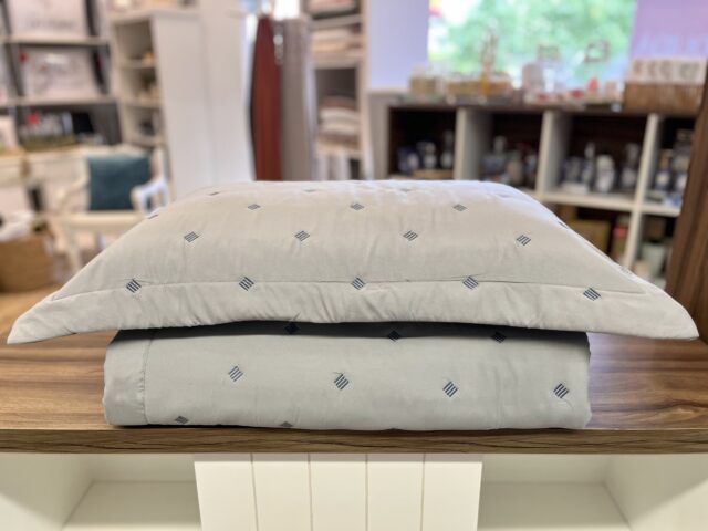 Jogo de colcha em microfibra. Com visual clean e sofisticado, Juno reforça a estética minimalista da linha com elegância sutil. Em tom de cinza mais escuro, que harmoniza com os bordados do jogo de cama, a colcha apresenta bordado discreto, que confere profundidade e requinte à composição. Os dois porta-travesseiros coordenados completam o conjunto com equilíbrio e leveza.
