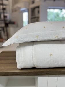Jogo de colcha em 100% algodão. Encantadora e muito refinada, a Colcha Floretta inspira elegância e serenidade. Bordados com mini margaridas afloram a pureza e sensibilidade, criando uma atmosfera relaxante e confortável para o ambiente. E a moldura em aba lisa realça o design com charme atemporal. Em puro algodão creponado muito aconchegante, o modelo possui toque macio inigualável, promovendo as melhores experiências sensoriais para todos os momentos.