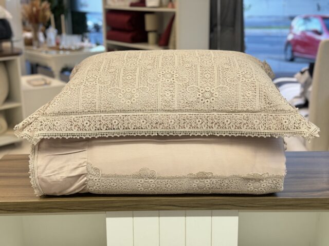 Jogo de colcha em cetim, 100% Algodão, com o toque muito macio e aconchegante. Majestosa, sofisticada e muito especial, a Colcha Juliet conduz a uma verdadeira viagem no tempo. Em rosa antigo, com sofisticados detalhes em renda guipure e babados laterais, a peça possui delicada inspiração vintage, exaltando personalidade e elegância atemporal. Seu toque delicado e extremamente macio, em cetim de puro algodão, promove experiências sensoriais reconfortantes e repletas de aconchego para noites de sono mais que perfeitas.