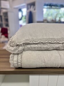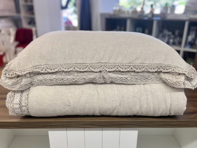 Jogo de colcha em 100% linho. Encantadora e muito refinada, Linetta exalta elegância e serenidade em cada detalhe. A ancestralidade do linho, convida a um mergulho sensorial, onde o luxo encontra o conforto em seu ápice. Os detalhes em capitonês criam efeito acolchoado, conferindo volume e beleza ao modelo. E a moldura rendada revela camadas de suavidade e romantismo em sua forma mais essencial. Com toque extremamente agradável para a pele, possui maciez absoluta, proporcionando experiências aconchegantes para momentos inigualáveis.