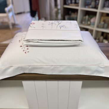 Jogo de colcha em percal 100% algodão no verso e 100% chambray na frente, com o toque muito macio e aconchegante. Expressiva, aconchegante e surpreendente, a Colcha Pavlova permeia entre tendências clássicas e contemporâneas, criando uma composição repleta de conforto e refinamento. Vistosos bordados com arabescos e elementos geométricos, ressaltam sua elegância natural, com o charme e graciosidade da alta-costura. E os babados laterais emolduram a peça conferindo beleza e harmonia. Possui o visual sofisticado dos tons naturais, permitindo combinações altamente criativas com outros itens da coleção. O delicioso toque macio do chambray e do algodão elevam a experiência durante o sono, promovendo conforto e muito bem-estar.