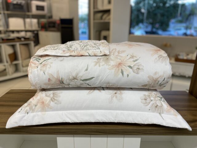 Jogo de colcha Orquidário em percal 180 fios, 100% algodão. Símbolo de beleza, vitalidade e boas vibrações, a Coleção Orquidário emana sensações aconchegantes, que conduzem a um cenário repleto de vivacidade, naturalmente elegante. Arranjos de orquídeas, pincelados em nuances delicadas com impressionante realismo, ornamentam com toque de originalidade e refinamento.