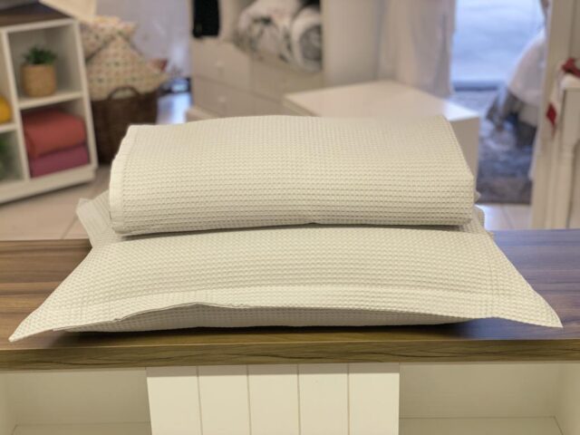 Jogo de colcha 100% algodão, com toque leve e aconchegante. É leve, fresco e resistente. Seu tecido em favo deixa a colcha ainda mais encorpada para que ela tenha um caimento perfeito sobre a cama, e o porta travesseiro que a acompanha possui 4 abas laterais que deixam a peça ainda mais elegante.