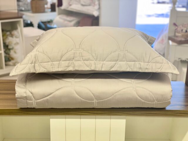 Jogo de colcha em cetim 300 fios, 100% Algodão Egípcio, com toque extremamente macio e aconchegante. Valenza traz um estilo contemporâneo e repleto de elegância. Em tons de cinza, possui minuciosos detalhes em renda e bordado, possuindo formas de arcos, correntes entrelaçadas e arabescos, o que remete o jardim da biblioteca de Brera, bairro de entrada para o centro histórico de Milão. Tecido sanforizado e mercerizado, perfeito para os dias mais frios, o cetim retém o calor, por ter a estrutura de entrelaçamento mais fechada. Encanta pelo toque de brilho e por seu toque suave e macio.