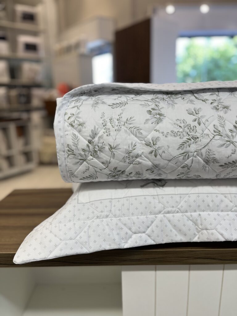 Jogo de colcha em percal 200 fios, 100% algodão egípcio. Essa coleção proporciona uma sensação suave ao toque, ideal para quem busca uma experiência de descanso confortável e agradável. O algodão egípcio é reconhecido por sua durabilidade e maciez, fazendo com que os produtos sejam resistentes e proporciona noites de sono relaxantes, além de manterem um visual elegante no quarto.