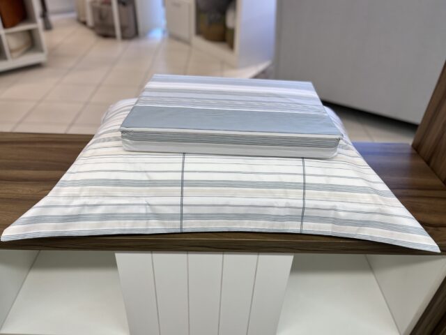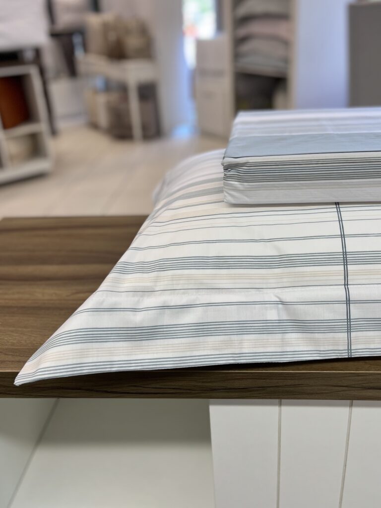 Jogo de lençol confeccionado em 200 fios, 100% algodão. O universo do conforto e da sofisticação se alinha perfeitamente com a nova estampa Saturno. Com um design que lembra os anéis de Saturno, ela possui composição elegante de listras suaves em tons acinzentados e azulados, criando uma atmosfera de tranquilidade e refinamento no seu quarto. Confeccionados em percal 100% algodão com 200 fios, a linha Saturno oferece toque macio e frescor incomparável, aliando conforto à durabilidade.