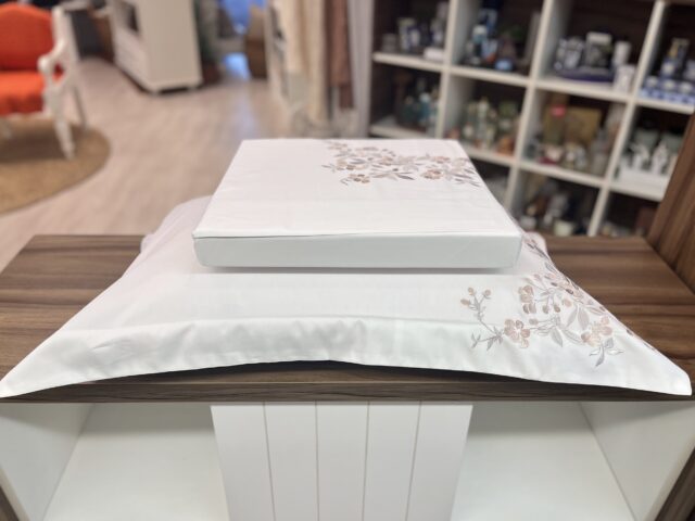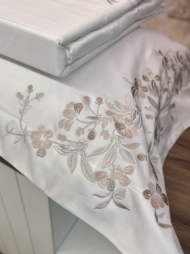 Jogo de lençol em 300 fios, 100% algodão egípcio. O pitoresco Campo di Fiori, tradicional praça de Roma, ganha vida todas as manhãs com uma charmosa feira ao ar livre que convida a sentir o verdadeiro espírito local da cidade. As bancas, repletas de flores perfumadas, encantam pelos aromas e cores, e inspiram os delicados bordados florais desta cama, entrelaçando arte e memória. Um convite para transformar o ambiente com um toque único, sensorial e romântico, evocando a atmosfera de Roma em cada detalhe.