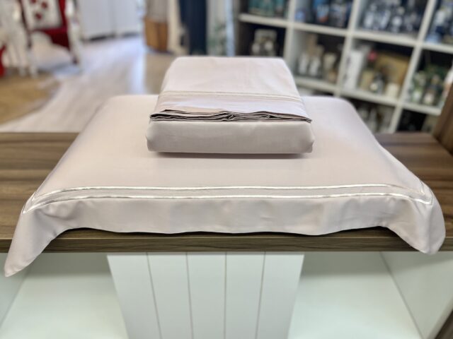 Jogo de lençol em 100% bambu, com o toque extremamente macio e aconchegante. Confeccionada com fibra de bambu 400 fios percal, garantindo um inigualável toque de cetim, extremamente macio e confortável. Tecido desenvolvido a partir da polpa do bambu com alta densidade de fios, possui propriedades naturalmente hipoalergênicas, bactericidas e antiácaros. Bali Duo possui acabamento com bordado duplo festoné nas fronhas e na vira do lençol adicionando um toque artesanal e sofisticado.