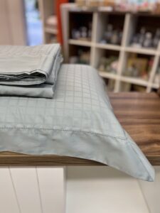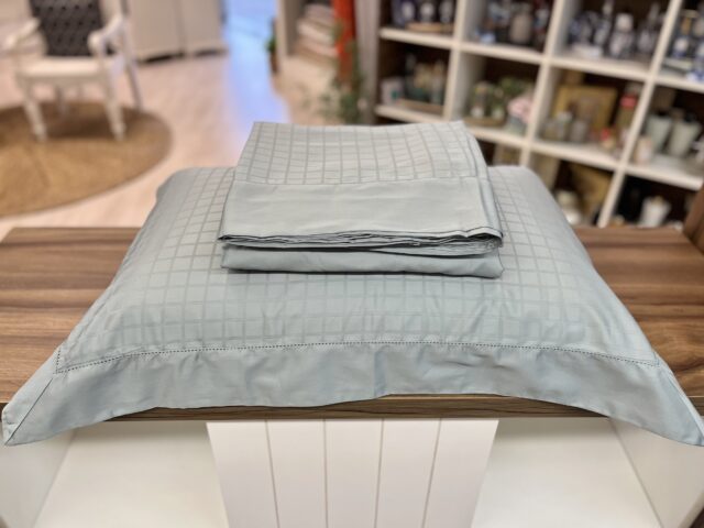 Jogo de lençol em cetim 300 fios, 100% algodão penteado, com tecido adamascado e detalhe em ponto ajour na vira do lençol e nas bordas da fronha. Toque acetinado e muito macio, super elegante e sofisticado!