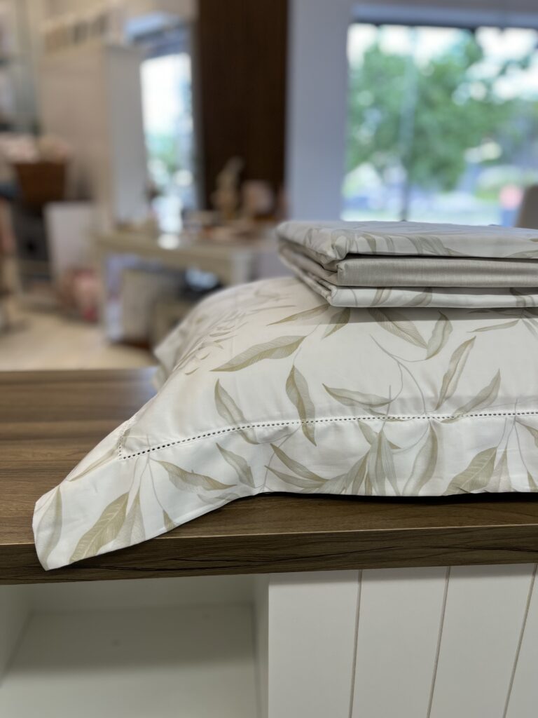 Jogo de lençol confeccionado em 100% algodão egípcio de 300 fios, oferece toque macio, alta respirabilidade e é hipoalergênico, ideal para noites tranquilas. une conforto e sofisticação para transformar seu quarto.