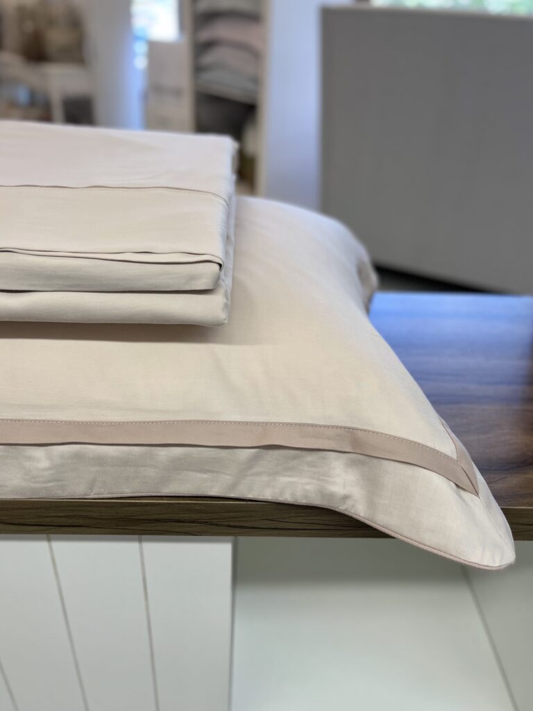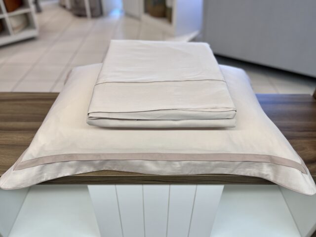 Jogo de lençol produzido em 100% algodão egípcio com 300 fios, garante uma textura extremamente macia e resistência excepcional. Seu tecido, composto por fibras longas e altamente respirável, oferece caimento impecável e é hipoalergênico, perfeito para noites de descanso pleno. O conjunto é composto por: um sobre lençol com vira de pala de 10 cm e detalhe de filete aplicado, lençol com elástico em cor sólida, e duas fronhas com 3 abas de 7 cm, acabamento com sobreposição de 2,5 cm e aplicação de cordonê em três lados. A combinação de branco e azul adiciona um toque de sofisticação moderna, harmonizando perfeitamente com o edredom e o jogo de colcha da mesma coleção.