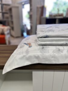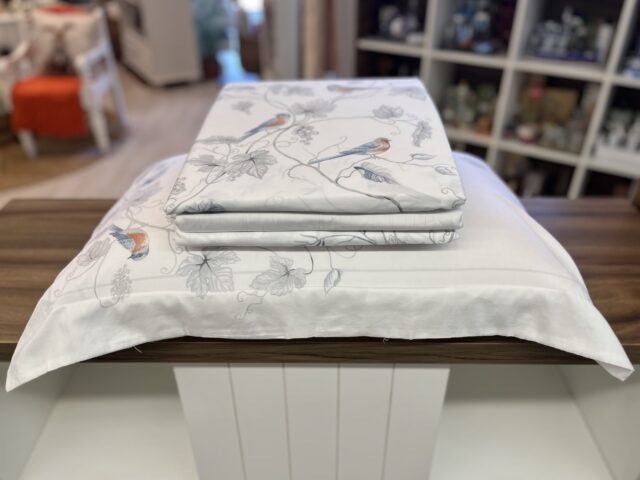 Jogo de lençol em 300 fios, 100% algodão egípcio. Videira nos transporta aos vinhedos, com uvas, parreiras, pássaros e paisagens inspiradoras. Oferece toque acetinado e conforto superior. As fronhas recebem uma estampa dimensionada com ricos detalhes que emolduram os travesseiros, enquanto o sobre lençol apresenta uma vira dimensionada que enriquece a composição. O lençol com elástico traz uma estampa de linhas assimétricas em tons claros, que harmoniza com facilidade. Com caimento perfeito do cetim, Videira une a naturalidade do desenho feito à mão à sofisticação de um design único.