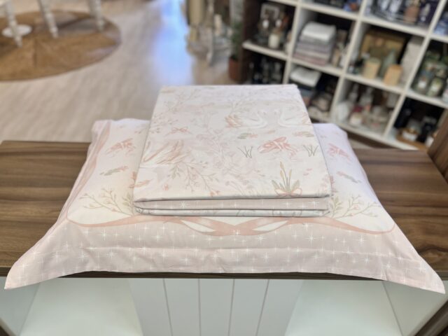 Jogo de lençol em 200 fios, 100% algodão. Inspirado na leveza e poesia do balé clássico, Encantada traz uma atmosfera mágica ao quarto infantil. Cisnes, bailarinas, laços e flores compõem a estampa desenhada à mão em tons delicados. A fronha dimensionada destaca as personagens principais, enquanto o sobre lençol exibe bailarinas e cisnes em movimentos graciosos. O lençol com elástico completa o conjunto com uma estampa de estrelas encantadora. Um convite ao sonho, que combina beleza, conforto e imaginação.