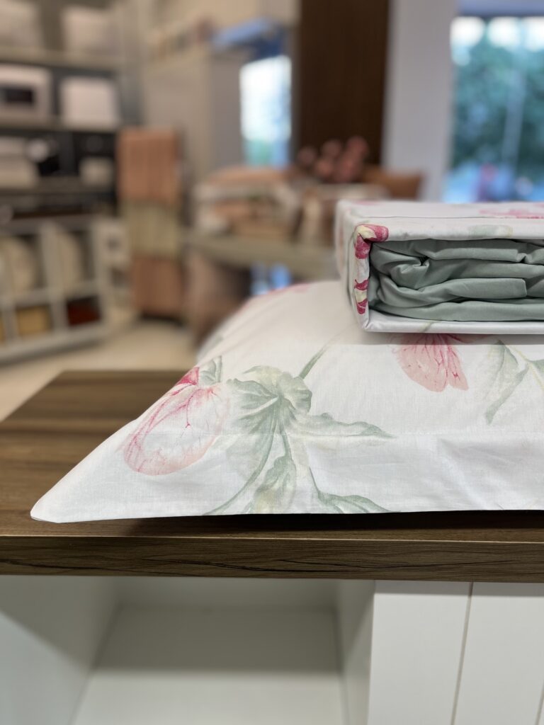 Jogo de lençol em percal 180 fios, 100% algodão. Toque macio e aconchegante, com estampa floral.