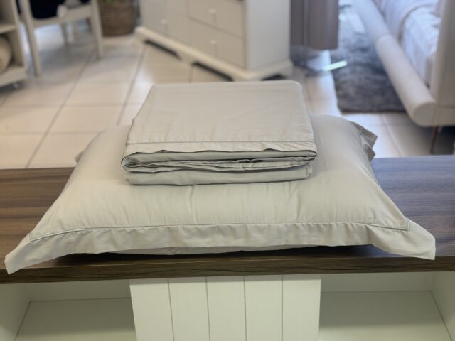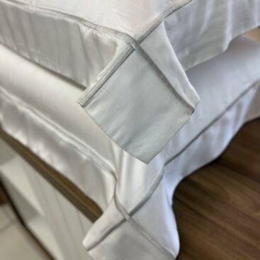 Jogo de lençol em percal 200 fios, 100% algodão, com toque macio e aconchegante. Possui acabamento em festonê clássico nas bordas da fronha e na vira do lençol, trazendo um visual clássico e elegante.