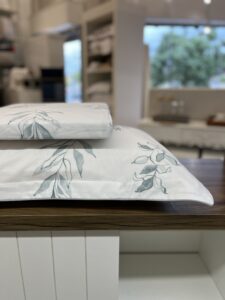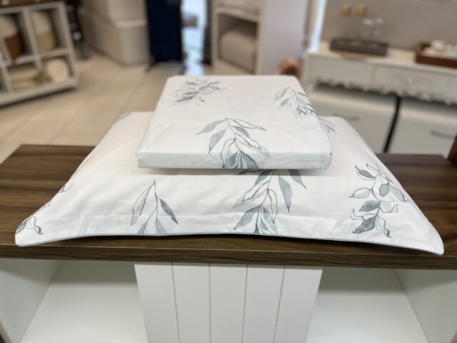 Jogo de lençol confeccionado em 100% algodão 200 fios, tem uma textura macia, altamente respirável e antipilling. Além de ser hipoalergênico, oferece a sensação de bem-estar durante o sono. O conjunto inclui um sobre lençol estampado  com dobra feita, pala de 10cm e filete aplicado na vira, um lençol com elástico estampado de e fronhas  estampadas com 3 abas de 4cm e cordonê aplicado nos três lados. A combinação de cores em branco e azul adiciona um toque clássico.