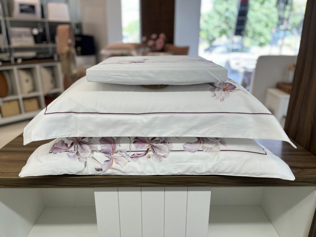 Jogo de lençol em cetim 300 fios 100% algodão egípcio. No coração de Florença, existe um jardim dedicado a esta flor de extraordinária beleza, o Giardino Dell’Iris. A íris embeleza os jardins e carrega um significado rico e histórico, tão representativa que é o símbolo de Florença, representando a nobreza e a proteção. Um símbolo do espírito florentino, da resiliência da beleza e da cultura que perdura ao longo dos séculos. Le Iris é uma expressão artística revelada através de pinceladas fluidas que traduzem o fatto a mano unido a delicadeza da estamparia digital sobre o cetim de algodão 300 fios entrelaçando beleza e elegância, ecoando a essência da cidade que a acolhe.