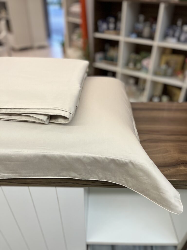 Jogo de lençol em cetim 400 fios, 100% algodão fio penteado, com o toque extremamente macio e aconchegante. Basquiat traduz a sofisticação do minimalismo. Com brilho suave e macio, o tecido acetinado é complementado pelo acabamento em roletê fino de cor contrastante, nas abas da fronha e também na dobra feita do sobre lençol. Visual elegante e discreto, perfeito para compor os ambientes com neutralidade.