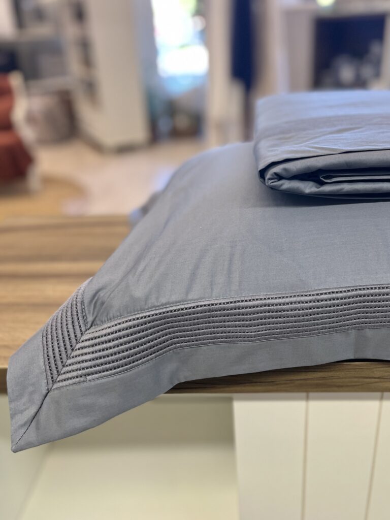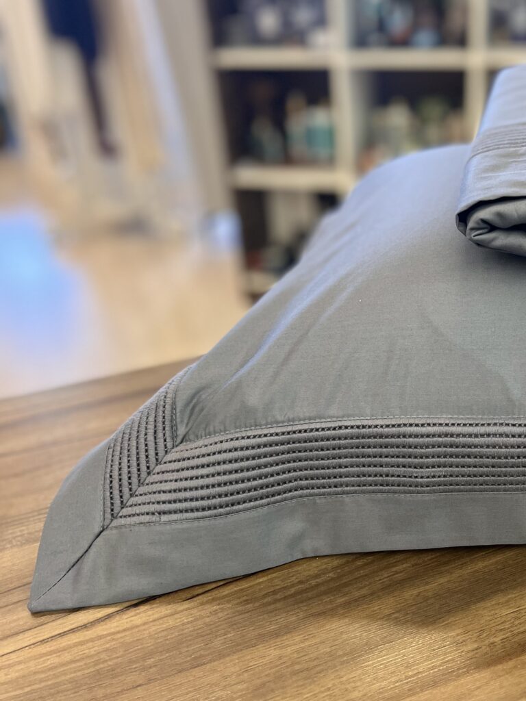 Jogo de lençol em cetim 600 fios, 100% algodão. Ecoando o charme inconfundível de Paris, traduz a essência do estilo. Revela-se em um tecido acetinado de toque envolvente e acabamento primoroso, que reflete o mais alto padrão da Buddemeyer em roupa de cama de luxo. O destaque vai para o guipure geométrico em algodão, com padrão retangular exclusivo, que remete às linhas elegantes das ruas parisienses. Aplicado com precisão na dobra do sobrelençol e nas fronhas, o esplendoroso guipure é harmoniosamente combinado a aba lisa, criando uma composição contemporânea, capaz de elevar tanto propostas minimalistas quanto ambientes mais clássicos com seu design.