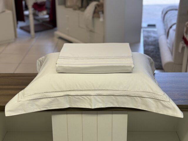 Jogo de lençol em cetim 800 fios, 100% Algodão Egípcio, com toque extremamente macio e aconchegante. Trento possui a beleza e charme das peças em alta-costura, toque acetinado que reflete seu brilho natural, promovendo experiências sensoriais inigualáveis de conforto e refinamento. Seus charmosos detalhes em ponto cheio emolduram a vira do sobrelençol e as fronhas.