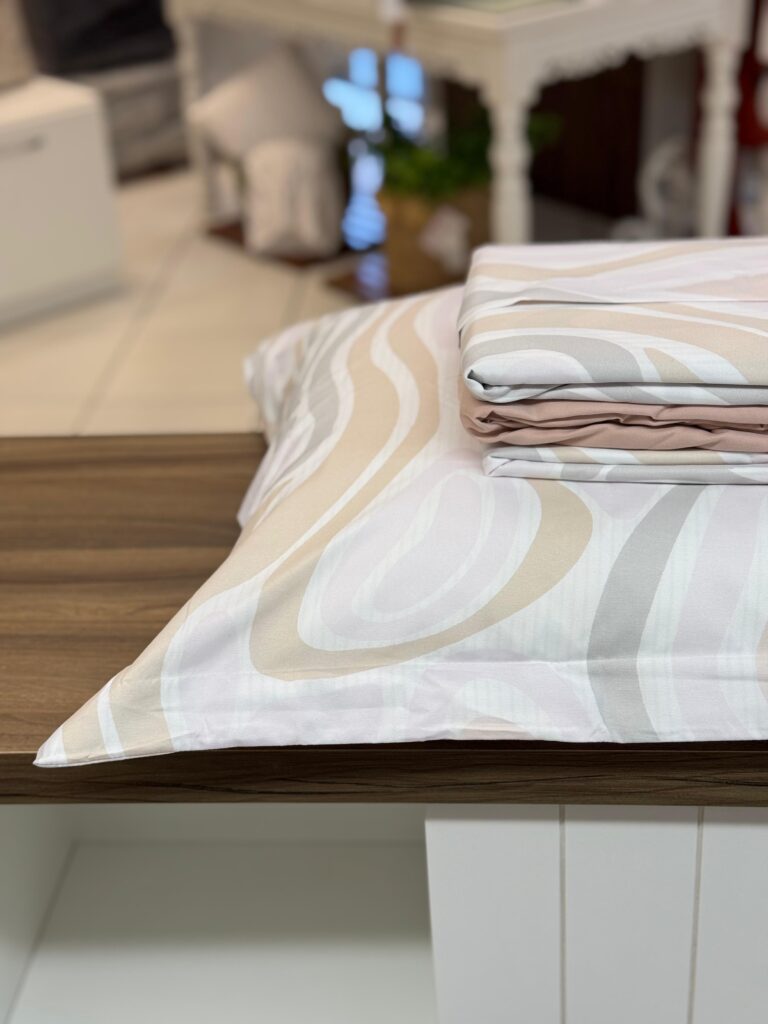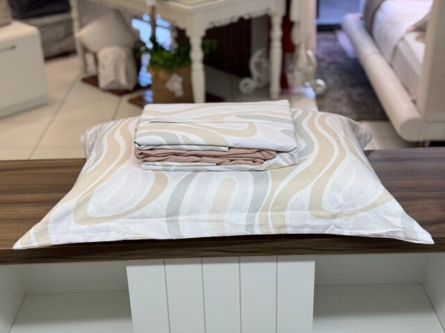 Jogo de lençol em microfibra, com toque aveludado super macio e aconchegante. Metaverso possui uma estampa com formas orgânicas, que confere mais beleza e delicadeza ao seu ambiente.