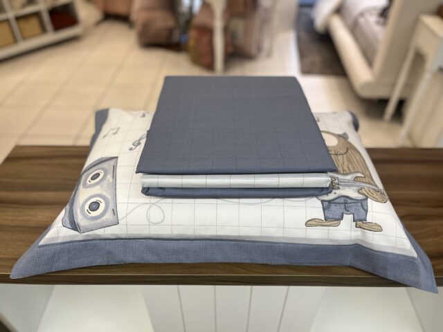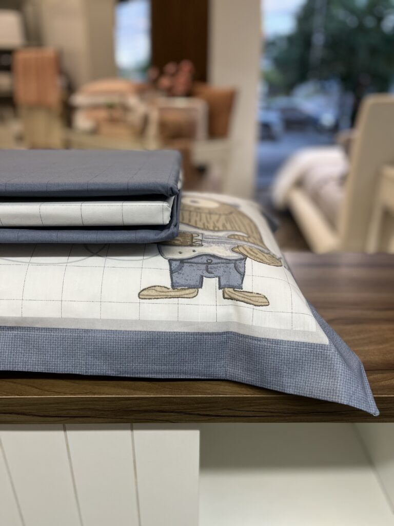 Jogo de lençol em percal 200 fios 100% algodão. Perfeito para os pequenos amantes da música que sonham com melodias e ritmos. Na elegante cor cinza, este conjunto é uma harmonia de estilo e conforto. O lençol com elástico é neutro na cor cinza, proporcionando um ajuste perfeito para a cama, acompanhando o sobre lençol com uma estampa suave de listras, adicionando um toque moderno ao conjunto.