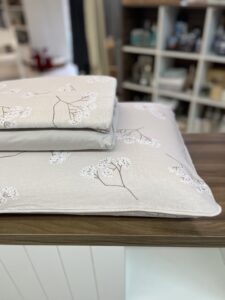 Jogo de lençol em malha, 100% algodão, com toque muito macio e aconchegante. Pampa traz o charme natural dos ramos florais em tom bege suave, criando um visual leve e acolhedor.