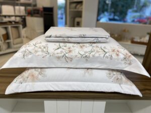 Jogo de lençol Orquidário em percal 180 fios, 100% algodão. Símbolo de beleza, vitalidade e boas vibrações, a Coleção Orquidário emana sensações aconchegantes, que conduzem a um cenário repleto de vivacidade, naturalmente elegante. Arranjos de orquídeas, pincelados em nuances delicadas com impressionante realismo, ornamentam com toque de originalidade e refinamento.