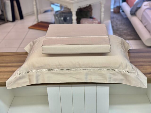 Jogo de lençol em cetim 300 fios, 100% algodão, com o toque extremamente macio e aconchegante. Uma excelente escolha para quem aprecia um estilo sofisticado e elegante. O lençol possui detalhe bordado em ponto ajour nas abas da fronha e na vira do lençol.