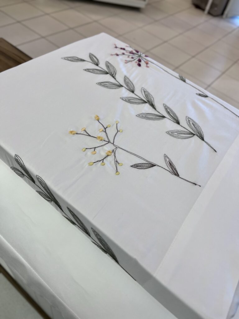 Jogo de lençol bordada em 300 fios, 100% algodão. Um toque de poesia para o quarto, encanta com seu bordado floral delicado. Com um toque artesanal sofisticado, a peça encanta pelos bordados de flores coloridas cuidadosamente aplicados, que parecem ter sido feitos à mão, trazendo leveza, suavidade e um charme poético ao ambiente.