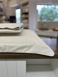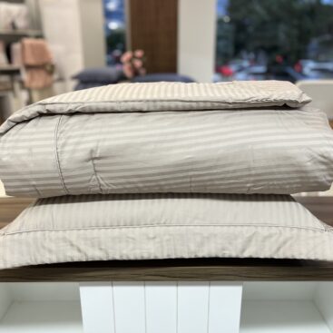 Sandalo combina sofisticação e conforto em cada detalhe. Sua composição de Viscolinho, que une 63% Algodão, 22% Viscose e 15% Linho, proporciona uma experiência única de maciez e leveza. Suas peças destacam-se pelo design refinado: o sobre lençol possui dobra feita com pala de 10 cm e filete aplicado, o lençol com elástico é liso e prático, enquanto as fronhas  trazem um toque especial com três abas de 7 cm, linha contrastante dupla e cordonê aplicado nos três lados. Na elegante tonalidade Linho/Grão, o conjunto harmoniza perfeitamente com peças da mesma linha ou cores similares, criando um ambiente acolhedor e sofisticado.