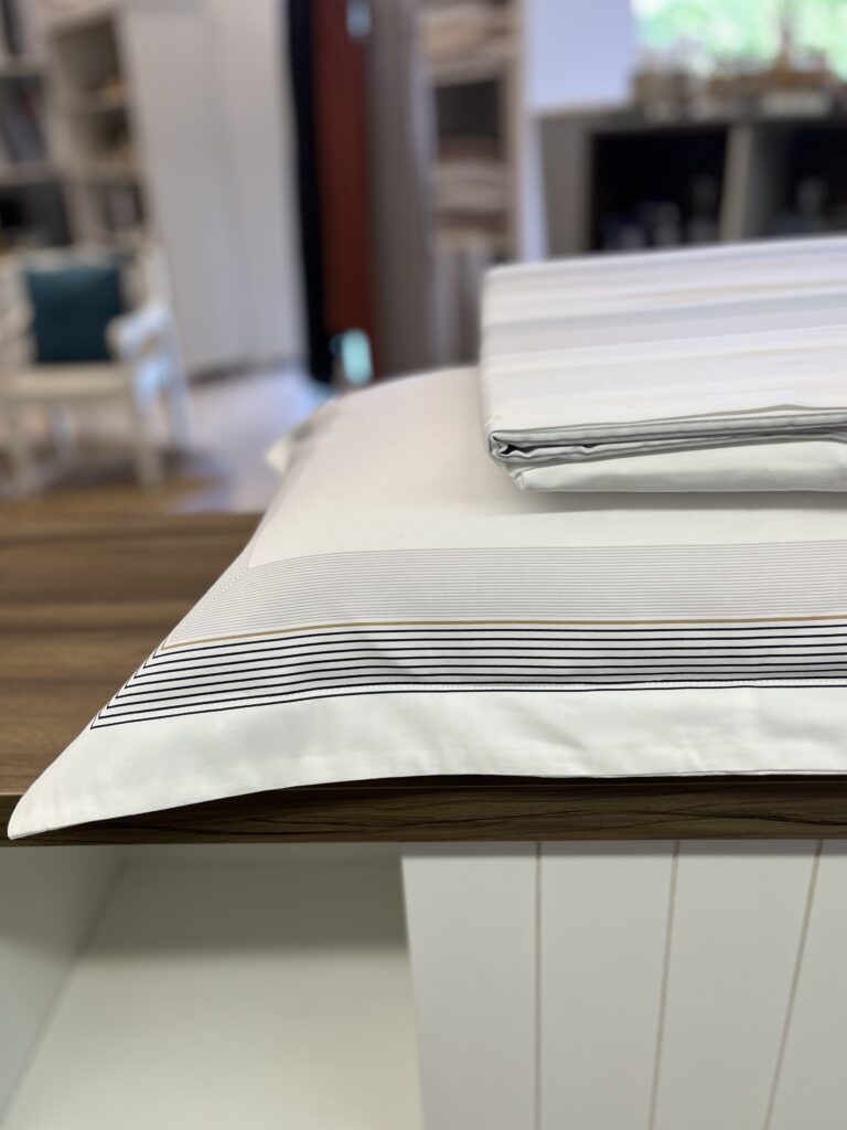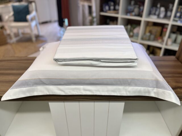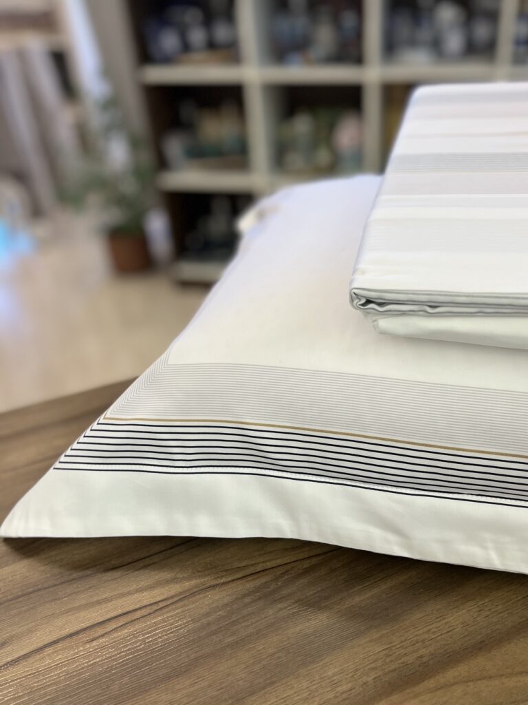 Jogo de lençol em 300 fios, 100% algodão egípcio. Possui toque macio e aconchegante, leva também a tecnologia antipilling, que evita que o tecido forme bolinhas. É composto por lençol de cima com vira, lençol de elástico cordenado com o lençol superior e fronhas com abas e estampa exclusiva dimensionada.