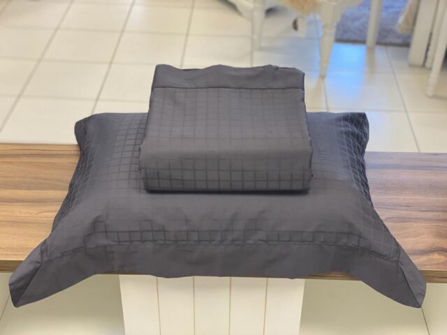 Jogo de lençol em cetim 300 fios, 100% algodão penteado, com tecido adamascado e detalhe em ponto ajour na vira do lençol e nas bordas da fronha. Toque acetinado e muito macio, super elegante e sofisticado!