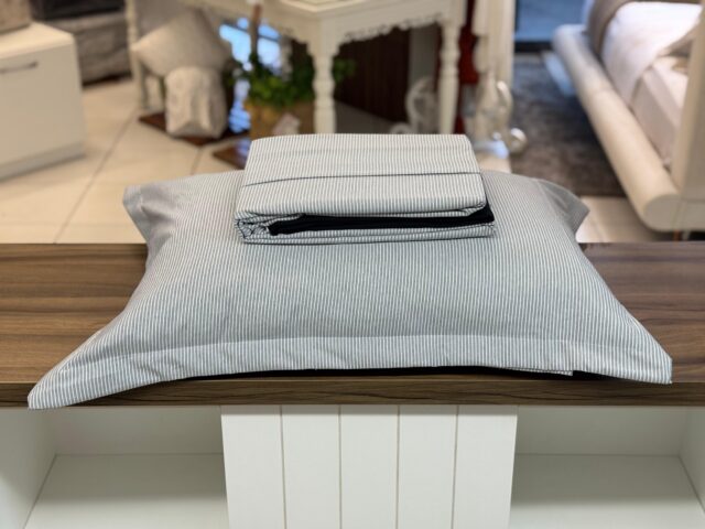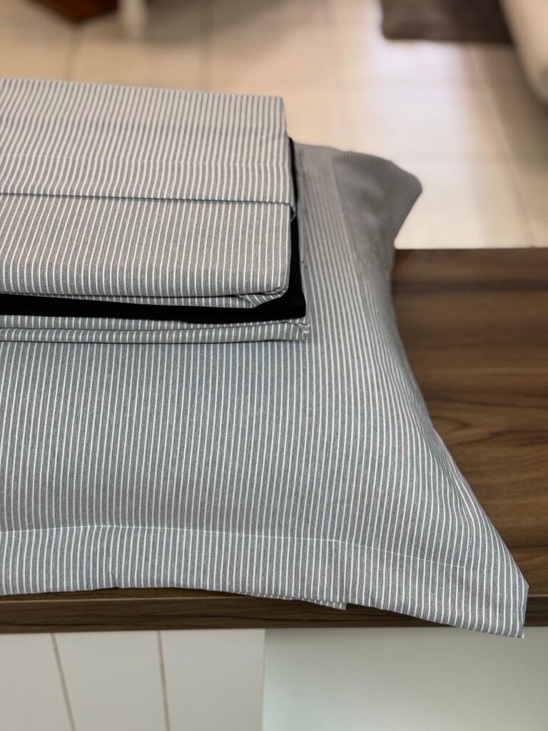 Jogo de lençol em microfibra, com toque aveludado super macio e aconchegante. A estampa Stripe possui um padrão clássico geométrico.
