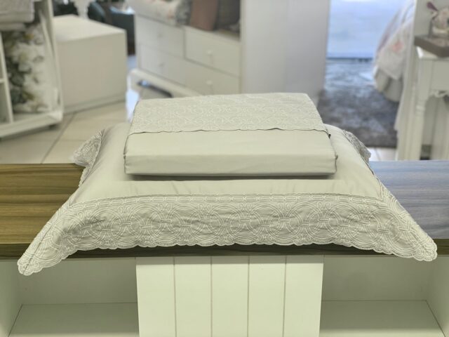 Jogo de lençol em cetim 300 fios, 100% Algodão Egípcio, com toque extremamente macio e aconchegante. Valenza traz um estilo contemporâneo e repleto de elegância. Em tons de cinza, possui minuciosos detalhes em renda e bordado, possuindo formas de arcos, correntes entrelaçadas e arabescos, o que remete o jardim da biblioteca de Brera, bairro de entrada para o centro histórico de Milão. Tecido sanforizado e mercerizado, perfeito para os dias mais frios, o cetim retém o calor, por ter a estrutura de entrelaçamento mais fechada. Encanta pelo toque de brilho e por seu toque suave e macio.