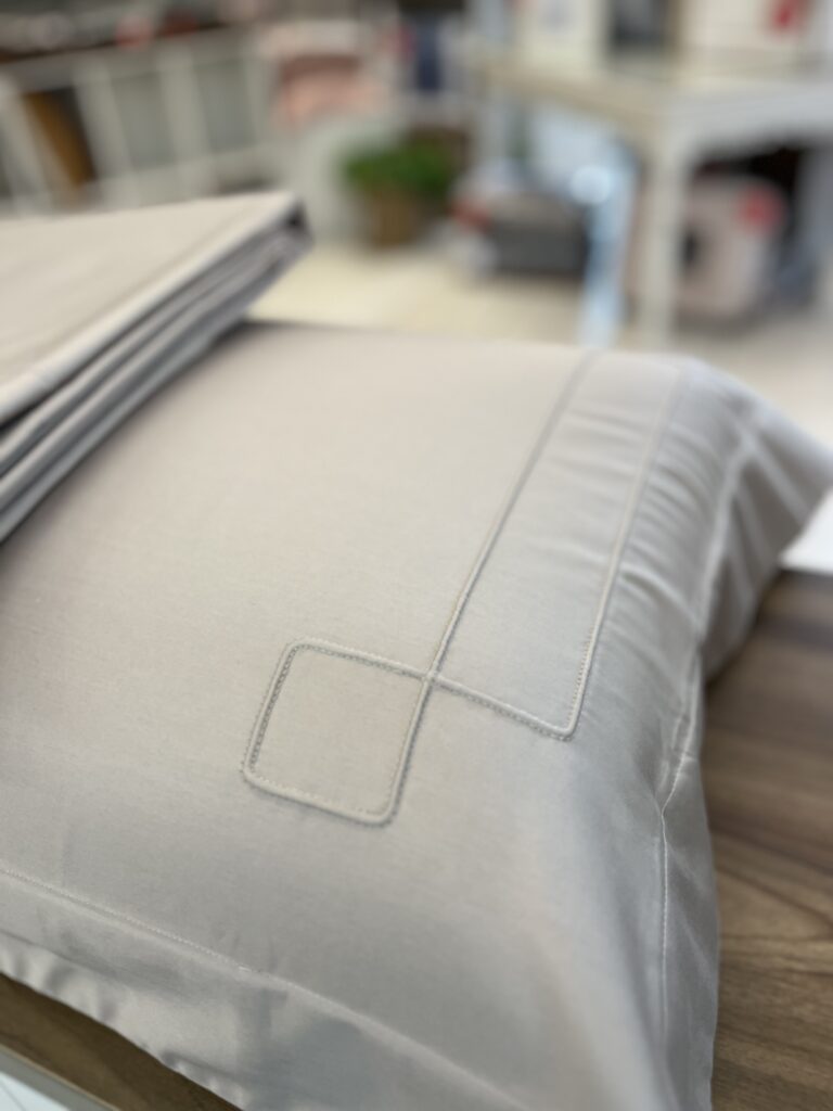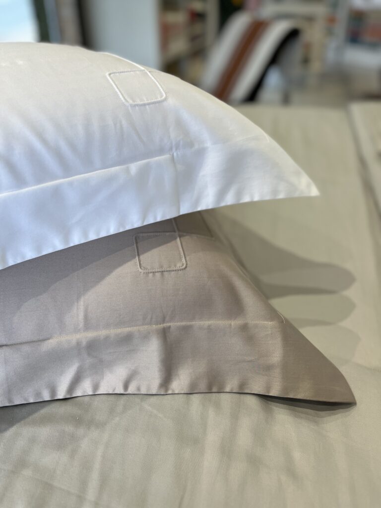 O ogo de lençol Vernazza é uma expressão sofisticada de design contemporâneo, inspirado na arquitetura icônica de Cinque Terre. Confeccionado em cetim 300 fios de 100% algodão egípcio, este conjunto traz uma elegância atemporal ao seu quarto. As fronhas com 4 abas e a dobra feita são adornadas com um bordado em alto relevo que evoca as linhas geométricas dos terraços naturais que emolduram as encostas dessa região italiana. Cada detalhe, desde o bordado até o lençol de elástico, foi pensado para criar uma atmosfera refinada, onde o relevo sutil sobre o cetim cria uma moldura perfeita que realça a beleza do tecido.