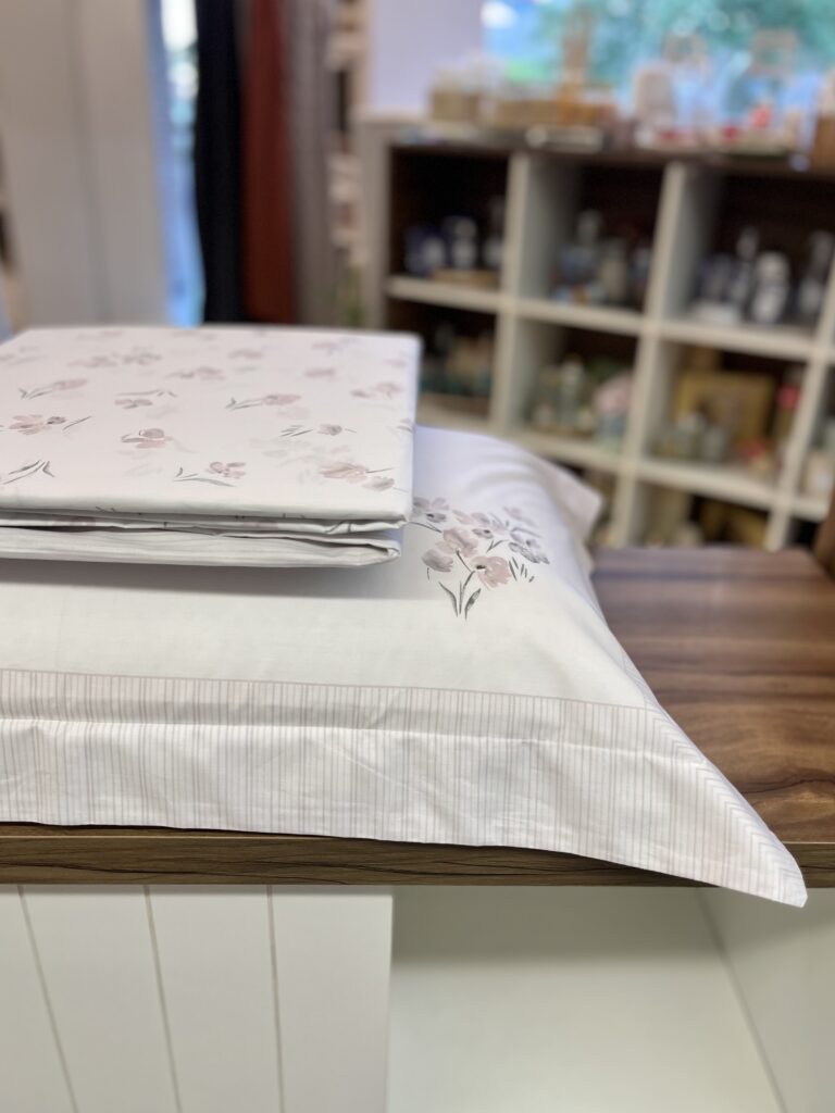 Jogo de lençol em percal 200 fios, 100% algodão egípcio. Oferece um toque macio e fresco, garantindo noites de descanso com o máximo conforto. Além disso, sua durabilidade preserva a beleza do tecido mesmo após diversas lavagens.